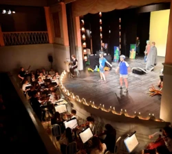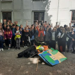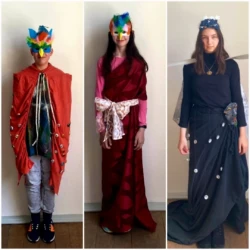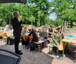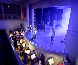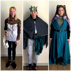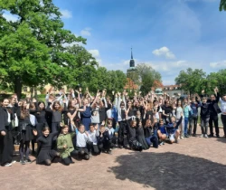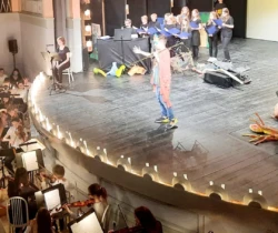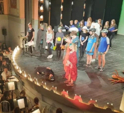 Das Zielpublikum in Bad Lauchstädt waren Kindergarten- und Grundschulkinder sowie unsere eigenen Schüler*innen des 6. Jahrgangs, einige Familien und weitere Zuschauer. Die Kunstschüler der Klasse 9 erarbeiteten dafür die Kostüme, Requisiten und stellten diese während der 45minütigen Vorführung inklusive Maskenbild passend zur Orchestermusik vor. Ebenso begleiteten Schülerinnen der 9. Kunstklasse das gesamte Projekt auch dokumentarfilmisch eigenständig in Kooperation mit dem Offenen Kanal Wettin/Medienzentrum Nest e.V., was bald als Doku-Trailer zu sehen sein wird.