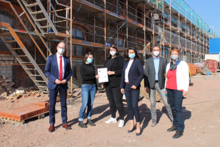 Herr Grund, Hanna Mauf, Hanna Liebrecht, Frau Wesser, Herr Schönlein und Frau Dr. Roenneke (v.l.n.r.) bei der Übergabe der Spende.
