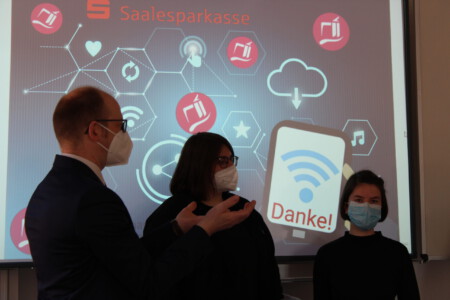 Daher danken wir der Saalesparkasse ausdrücklich und auch dem Förderverein „Eltern und Freunde des Burg-Gymnasiums Wettin e.V.“, der die Schule nicht nur in diesem Projekt unterstützte, sondern bereits die Anschaffung der bisherigen Geräte zum Ausbau des WLAN -Netzes nutzbringend für alle finanzierte.