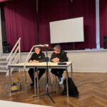 Die Anwesenden durften nun gespannt sein, wer sich im Halbfinale durchsetzen und es in die Finalrunde der letzten drei Kandidatinnen schaffen würde. Kurzweilig führten die zwei Moderatoren Lennix Pitzschke und Lennart Meyer die Beteiligten durch den Wettbewerb und verkündeten feierlich die von der Jury UND vom Publikum demokratisch nach ihrer individuellen Vortragsleistung gewählten Finalistinnen: Sina Böttcher, Annalena Zwanzig und Lea Woge!